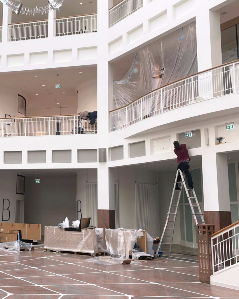 Jedes Paneel wurde individuell für die Gegebenheiten des Rathauses ausgemessen und gefertig. Als zertifizierter White Glove Installer von Kvadrat garantiert MASTO Dekorationen nicht nur eine handwerklich einwandfreie Montage, sondern auch die volle 10-jährige Herstellergarantie auf das System.